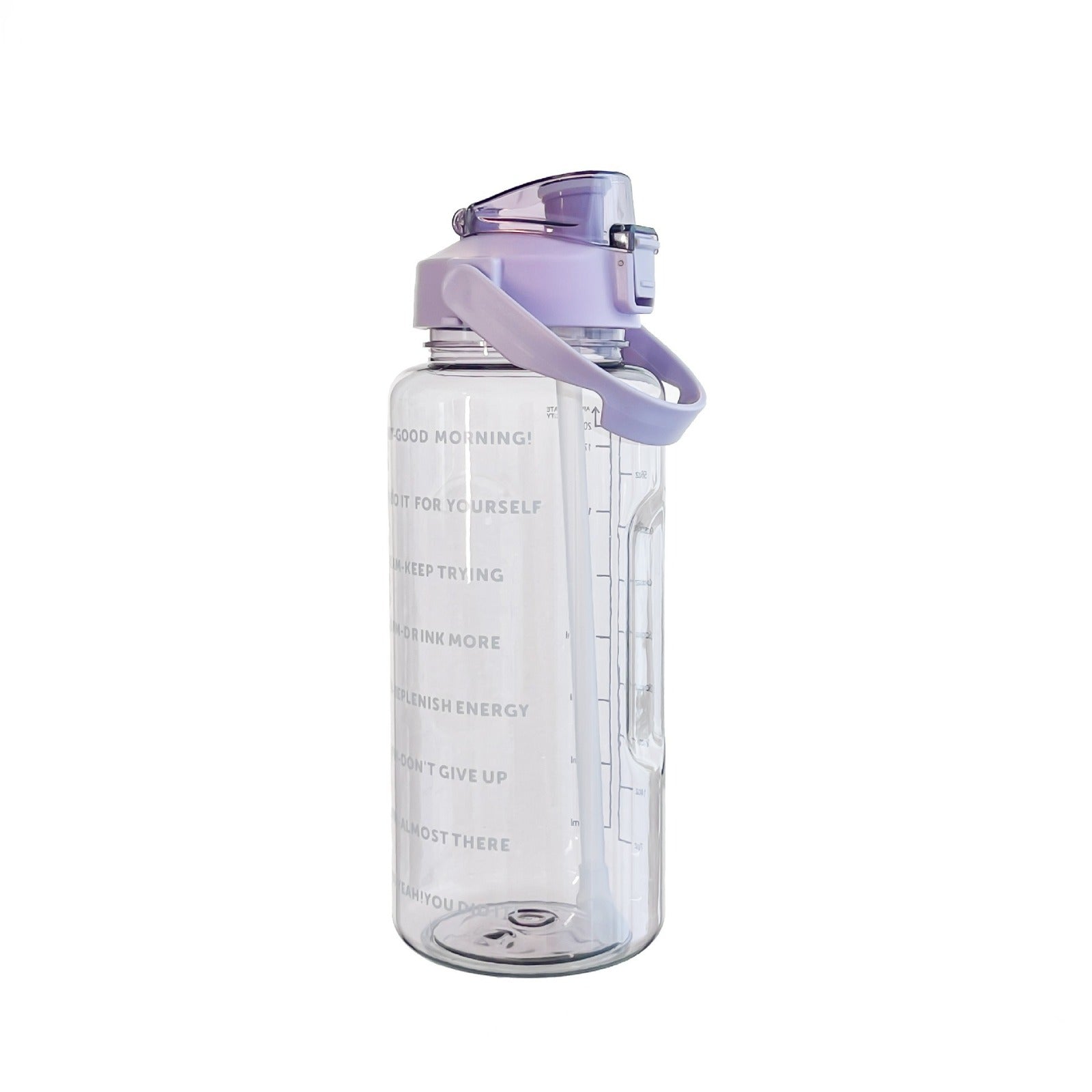 2-liters flaska med sugrör, bärhandtag och motiverande tidsmarkeringar