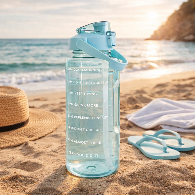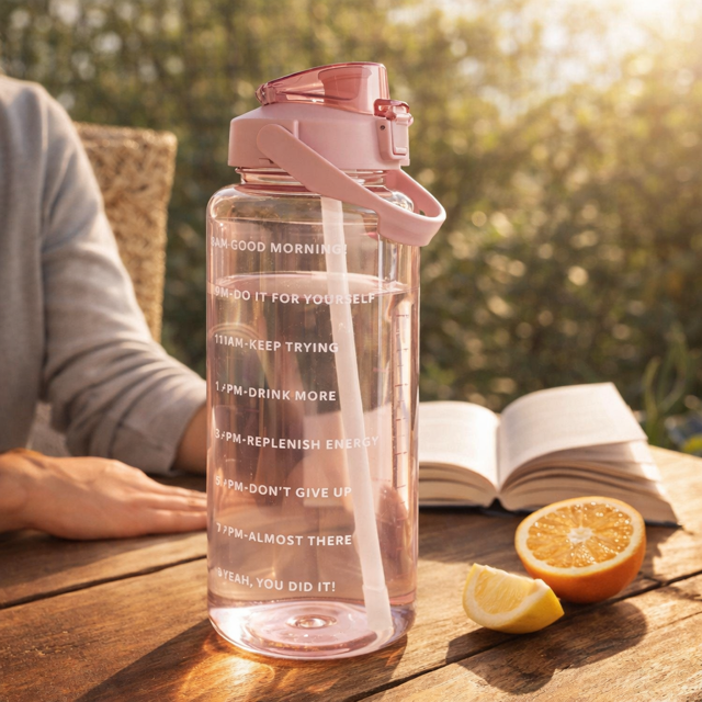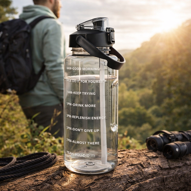 2L vattenflaska med tidsmarkering – håll koll på ditt dagliga vätskeintag