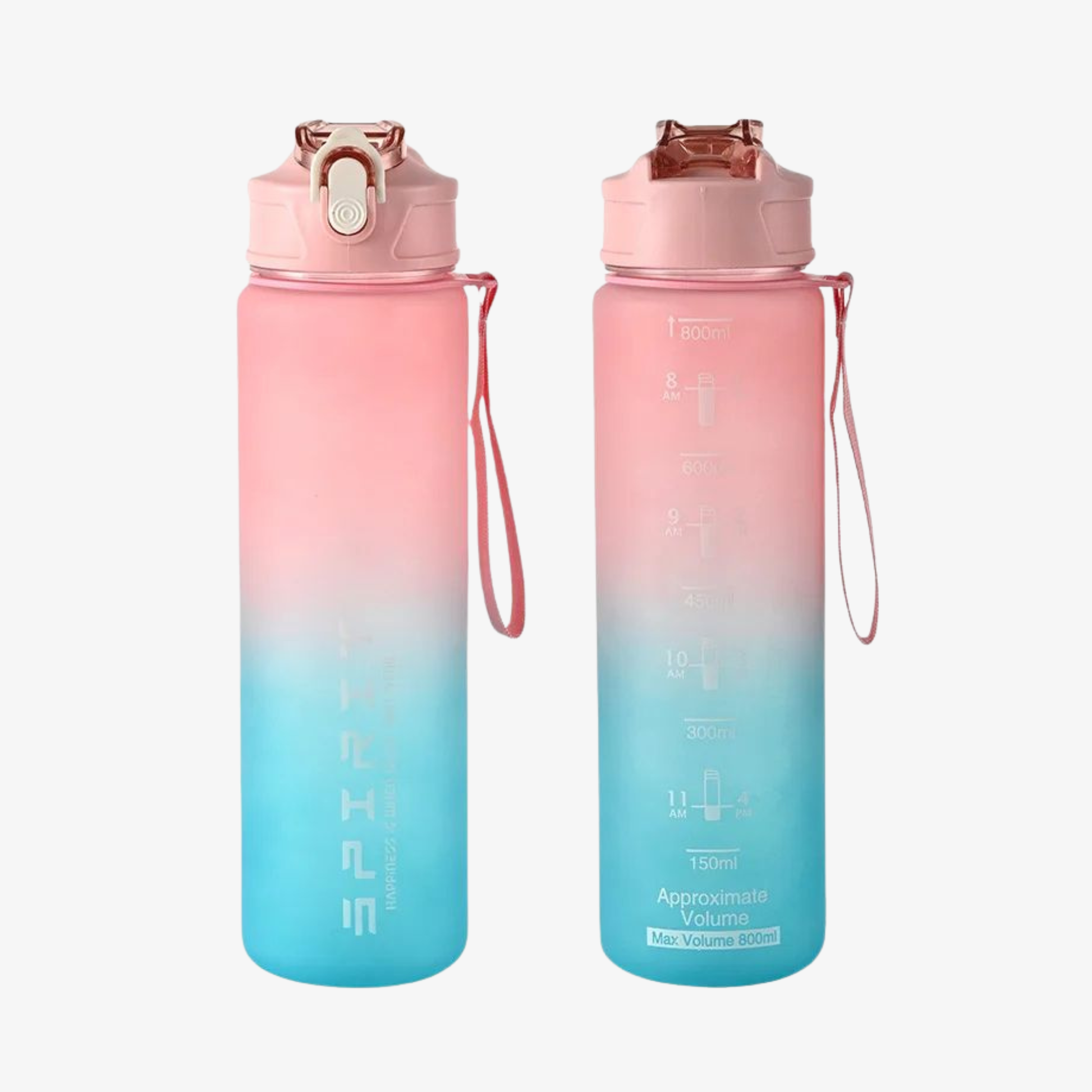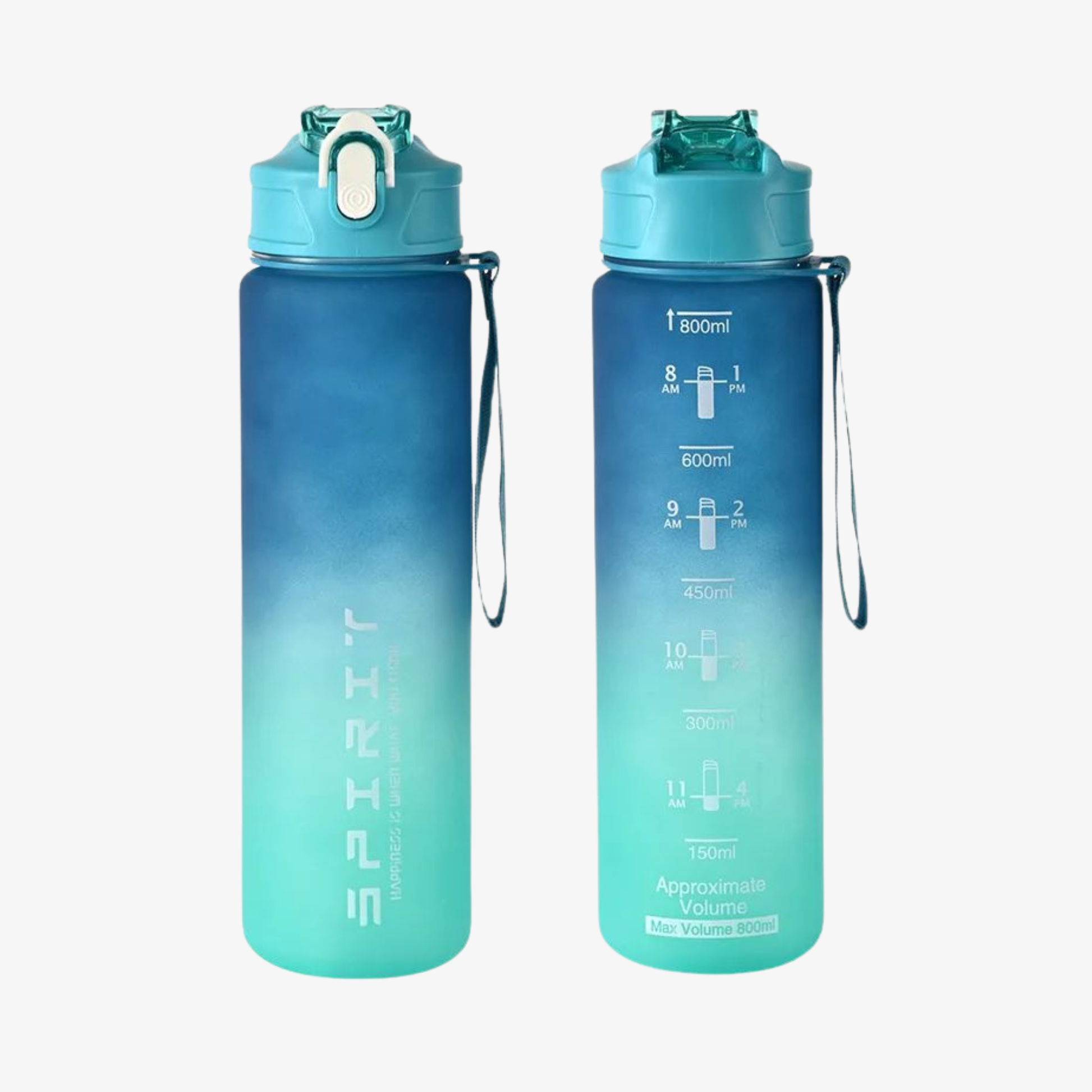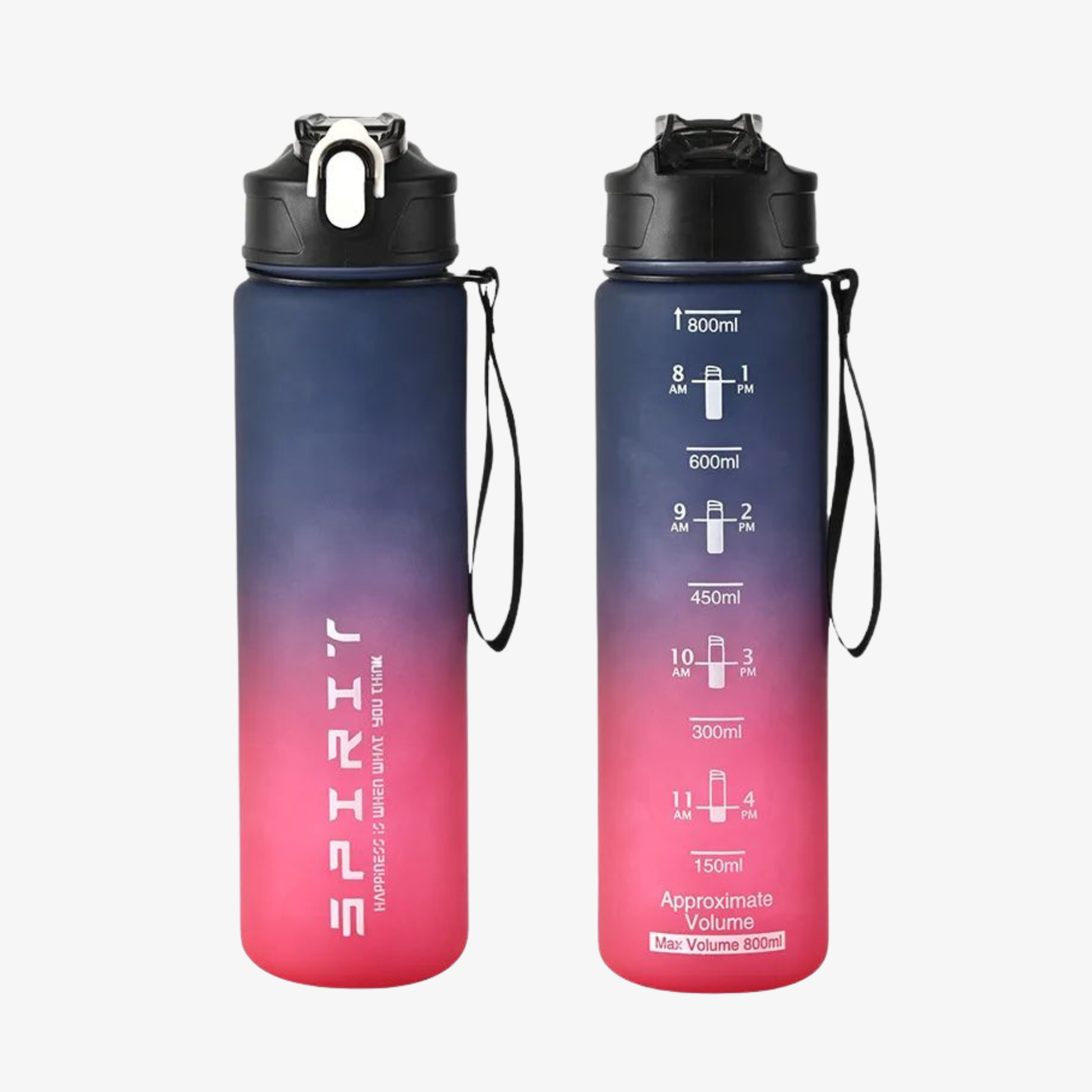 Denna stilrena vattenflaska på 800 ml gör det enkelt att hålla koll på ditt dagliga vätskeintag. Med tydliga tidsmarkeringar och jämna mål under dagen ser du exakt hur mycket du druckit – en enkel lösning för dig som vill öka ditt välmående, orka mer och återhämta dig snabbare.