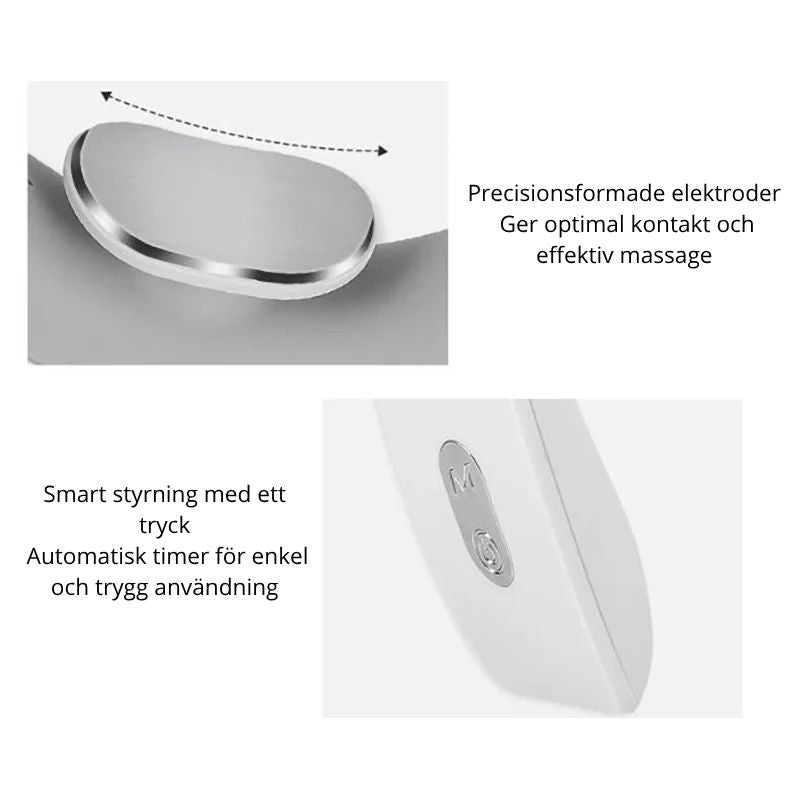 Ergonomisk och lätt design: Anpassar sig perfekt efter nackens form med elastiska armar och flytande elektrodplattor.