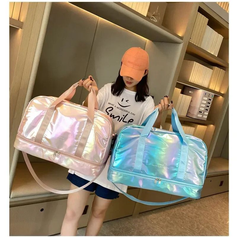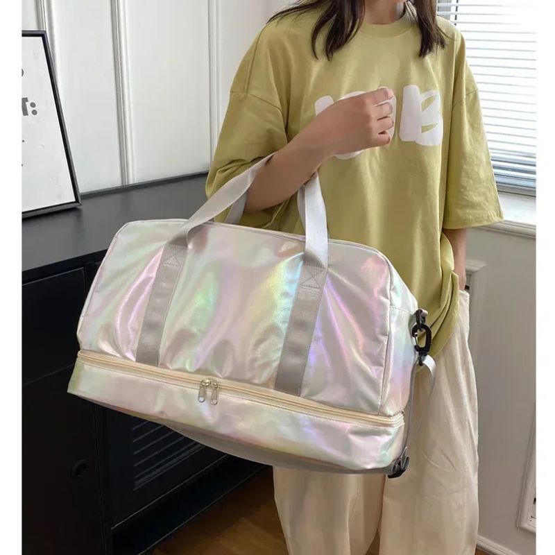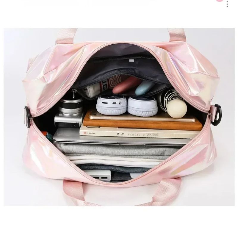 Weekend- & träningsväska med skofack – stilren, rymlig och glansig design