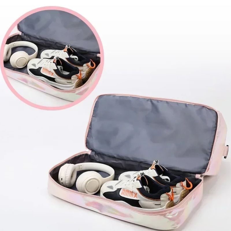 Väskan har ett separat ventilerat skofack i botten, flera innerfickor och en justerbar axelrem för maximal komfort. Tillverkad i slitstarkt, vattenavvisande material som håller dina saker torra och organiserade – oavsett om du är på väg till träningen, helgresan eller jobbet.